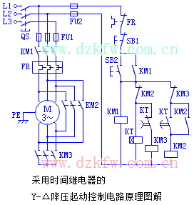 在電機Y—Δ起動過程中,繞組的自動切換由時間繼電器KT延時動作來控制。這種控制方式稱為按時間原則控制,它在機床自動控制中得到廣泛應用。KT延時的長短應根據(jù)起動過程所需時間來整定。