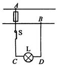 2.短路 短路就是指電流沒(méi)有經(jīng)過(guò)用電器而直接構(gòu)成通路。發(fā)生短路時(shí),電路中的電阻很小,電流很大,保險(xiǎn)絲自動(dòng)熔斷。判斷短路故障的常見方法是:斷開所有用電器和總開關(guān),然后將火線上的保險(xiǎn)絲取下,換上一只額定電壓為220 V的燈泡,閉合總開關(guān),若發(fā)現(xiàn)這個(gè)燈泡正常發(fā)光,則電路中存在短路;若發(fā)現(xiàn)這個(gè)燈泡發(fā)光較暗,則電路可能是正常的。