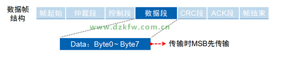 由一個顯性位(低電平)組成,發送節點發送幀起始,其他節點同步于幀起始;