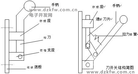 使用速斷刀片既加快了分斷速度,減少了靜插座的燒損;還由于電弧產生在靜插座與速斷刀片之間,保護了主觸刀,且使刀開關的斷開速度與操作者的操作速度無關。
