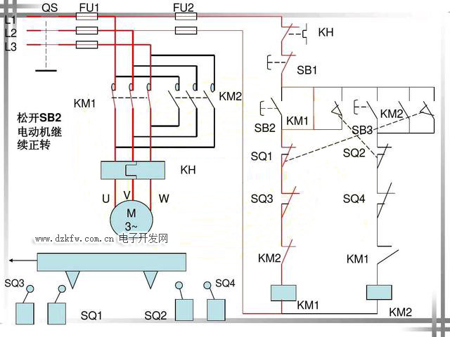 行程開關(guān)控制電動(dòng)機(jī)自動(dòng)往返控制電路圖