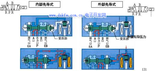外部先導和內部先導其他部分大都是一樣的,外部先導也只是把一路氣直接接到先導口,并不用增加電磁閥,這個先導口是一直通著氣的。只要增加氣管即可。