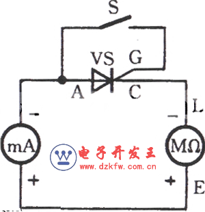 用兆歐表檢查晶閘管的觸發能力如圖為用兆歐表檢查晶閘管的觸發能力電路圖: