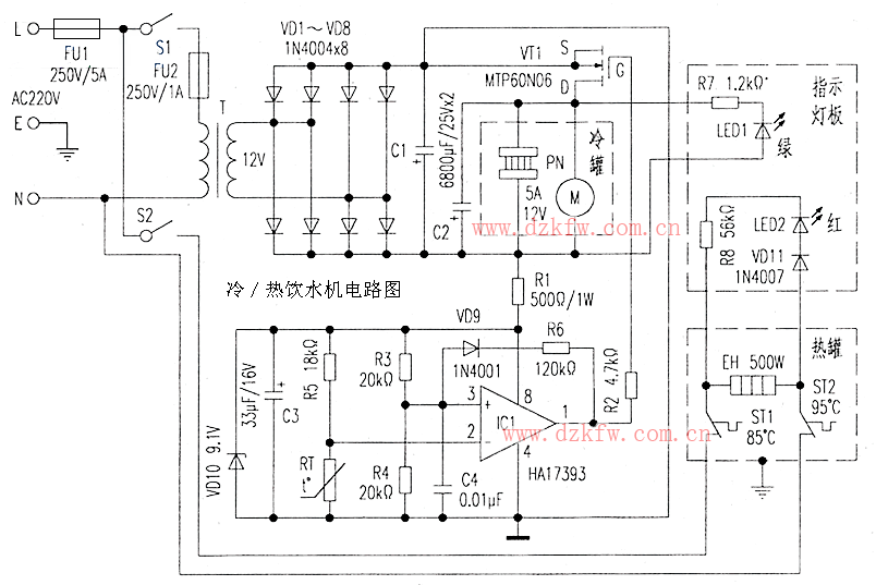 關鍵字:HA17393,飲水機控制電路,飲水機維修,飲水機電路圖