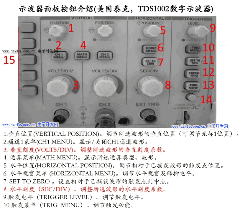 (5)ADD:兩通道的信號(hào)疊加。修理中以選擇通道1或通道2為多。