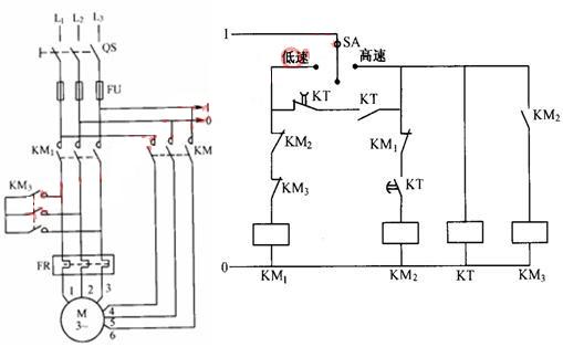 2、雙速三相交流異步電動(dòng)機(jī)自動(dòng)控制變極調(diào)速線路