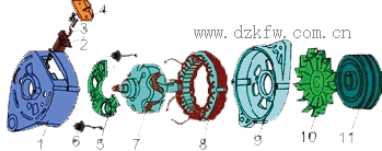 7-轉子 8-定子總成 9-前端蓋 10-風扇 11-皮帶輪