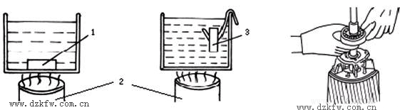 1—軸承不能放在槽底;2—火爐;3—軸承應(yīng)吊在槽中;