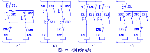 圖2.21所示為幾種雙機聯鎖的控制電路。