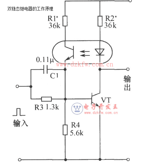 光電耦合器和晶體管組成的雙穩(wěn)態(tài)電路圖