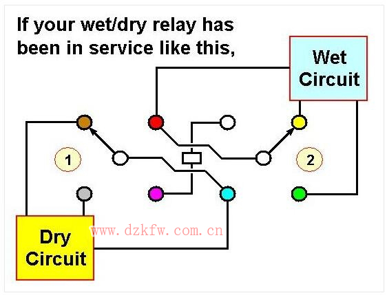 這就提出了一個有關(guān)設(shè)備維護(hù)和維修問題。如果你有一個插入式繼電器的觸點標(biāo)定為可同時滿足濕式或干式開關(guān)服務(wù),然后在進(jìn)行某些設(shè)備維護(hù)或維修時,你允許圖2這種情況發(fā)生。