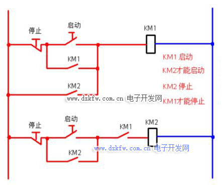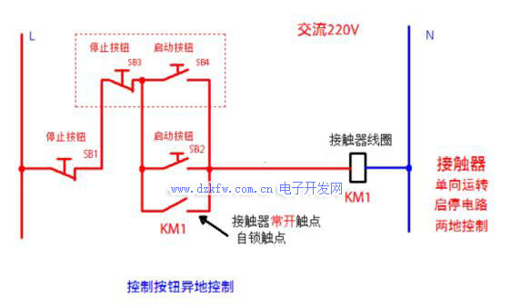 我們再講下異地控制的技巧:停止按鈕串聯,啟動按鈕并聯。
