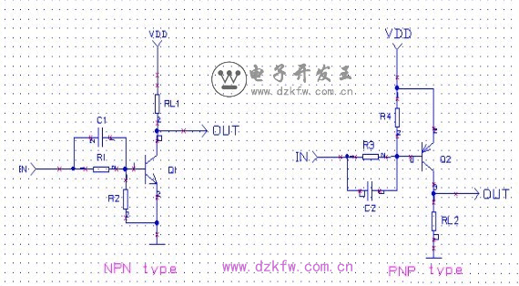 基本原理:由于消特基二極管Vf為0.2至0.4V比Vbe小,所以當晶體管導通后大部分的基極電流是從二極管然后通過三極管到地的,這樣流到三極管基極的電流就很小,積累起來的電荷也少,當晶體管關斷(IN信號突然發生跳變)時需要卸放的電荷少,關斷自然就快。