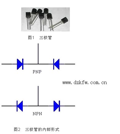 大家知道,三極管是含有兩個PN結的半導體器件。根據兩個PN結連接方式不同,可以分為NPN型和PNP型兩種不同導電類型的三極管,圖1是它們的電路符號和等效電路。