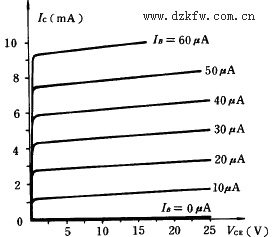 圖1   NPN 三極管共射極電路                             圖2  共射極電路輸出特性曲