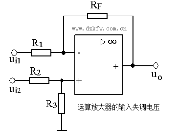 取RF=R3=100kΩ,R1=R2=100Ω,將Ui1和Ui2同時接地,Uo/1001就是輸入失調(diào)電壓。