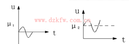 設輸入為一正弦交流小信號u1(注意是小信號,也即在±0.7v內,如果超過了這個范圍會出現飽和失真、截止失真問題),其大小和方向均做周期性變化,平均值為零;經過電容C1的耦合后其與原直流偏置電壓Ube疊加后變成了脈動直流信號u2,也即u2的波形和u1一樣,但u2均為正值即u2>0,u2的平均電壓不在為零,這樣做的目的是因為發射結導通有一個死區電壓,必須抬升電壓后才能保證完整的信號輸入,否則信號會被削去大部分,造成了嚴重的失真。見下圖輸入電壓u1、u2波形圖。