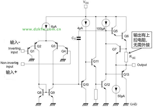 比較器與放大器使用的符號是一樣的,但是用法與內部結都是不一樣的。