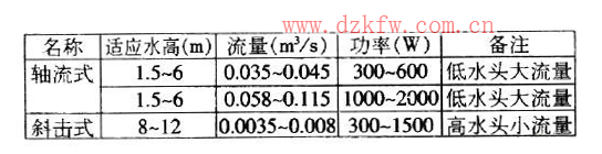 該發(fā)電機(jī)組可以安裝在水輪機(jī)外殼上端,外殼罩著水輪,此水輪為十二瓣鼓形水葉組成,高壓噴水槍與水輪成斜角,高壓強(qiáng)的水流噴出時沖擊水輪高速轉(zhuǎn)動,帶動強(qiáng)磁轉(zhuǎn)子同步運(yùn)轉(zhuǎn),定子線圈切割磁力線產(chǎn)生電壓,水槍有水閥調(diào)控水流量。另斜擊式機(jī)組的發(fā)電機(jī),如果接上220V/5W 燈泡,用手轉(zhuǎn)動水輪,燈泡便能發(fā)光。因此可以單獨(dú)拆出改裝成手搖捕魚機(jī)或風(fēng)力發(fā)電機(jī),也可作學(xué)校物理教學(xué)演示實(shí)體。 根據(jù)水輪機(jī)下水口尺寸,用水泥混凝土砌好基礅,中間開一個與底腔相當(dāng)?shù)呐潘,此管可以是敞開式也可為封閉式,類似于小爐灶,排水管與排水渠相通,砌礅同時裝好固定機(jī)座的螺絲。根據(jù)進(jìn)水管直徑大小購回長度與水頭相當(dāng)?shù)蔫F管或PVC、膠管制作成壓力管,高度越高壓力越大,有條件的最好做成上大下小,這樣效果更好。把水管與水輪機(jī)進(jìn)水管連接起來,上端進(jìn)水管與進(jìn)水渠出水口用水泥固定并密封。水管中段用木架支撐,放水開機(jī)時,先關(guān)閉水閥用塑料袋包好發(fā)電機(jī),以防水管漏水淋濕,待無漏水后再開水閥運(yùn)轉(zhuǎn)發(fā)電。運(yùn)轉(zhuǎn)后如發(fā)現(xiàn)燈泡不夠亮,檢查壓力管是否較大。各種水輪機(jī)技術(shù)數(shù)據(jù)參照附表。