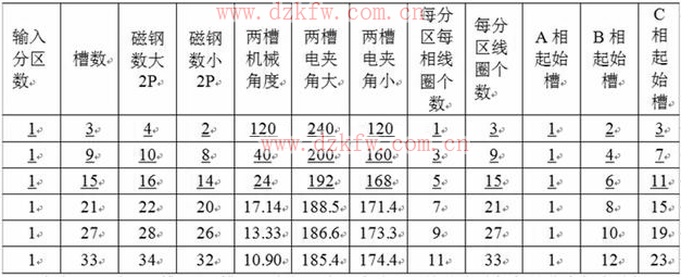 只有一個(gè)分區(qū)組成的電動(dòng)機(jī)肯定是非力偶電動(dòng)機(jī),只有一個(gè)分區(qū)的電動(dòng)機(jī)如下表: