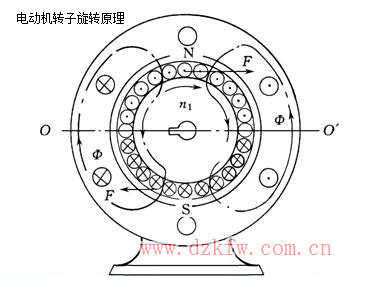 轉子繞組中有F感應電流,就要受到旋轉磁場電磁力的作用,方向由左手定則判定。由圖中可以看出電磁力F的方向與旋轉磁場方向一致,也為順時針方向。電磁力在轉子上形成轉矩,于是轉子在電磁轉矩的作用下沿著旋轉磁場的方向旋轉。