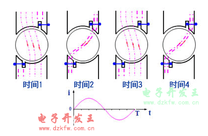 交流電流改變方向后,磁通同樣由磁極的未罩部分向被罩部分移動這樣轉子就跟著磁場移動的方向轉動起來。