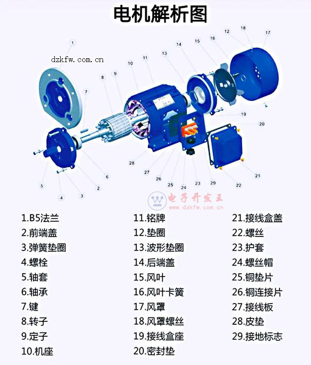 三相交流異步電動機的主要部件,見下圖所示
