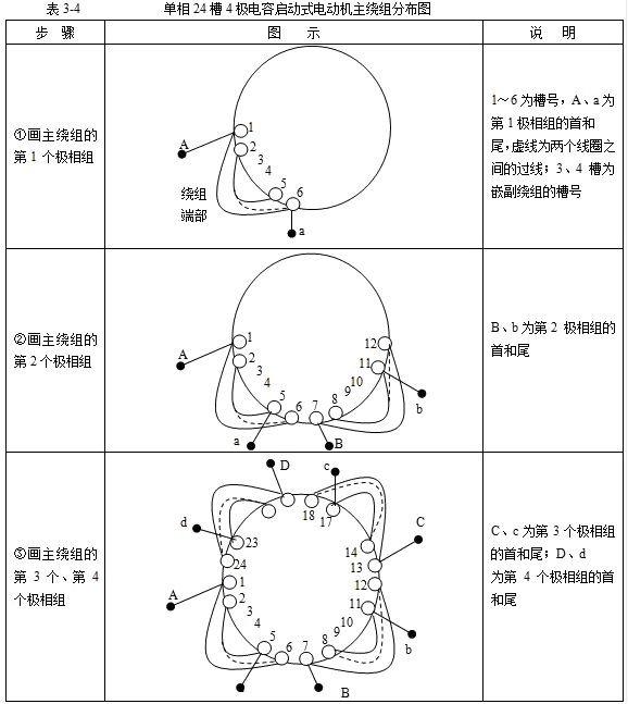 (4)單相異步電動機正弦繞組的A類安排和B類安排,詳見表3-3。
