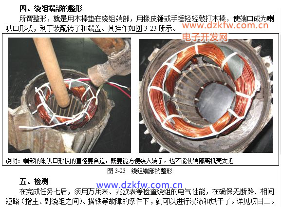 在完成任務(wù)七后,須用萬用表、兆歐表等檢查繞組的電氣性能,在確保無斷路、相間短路(指主、副繞組之間)、搭鐵等故障的條件下,就可以進行浸漆和烘干了。詳見項目二。