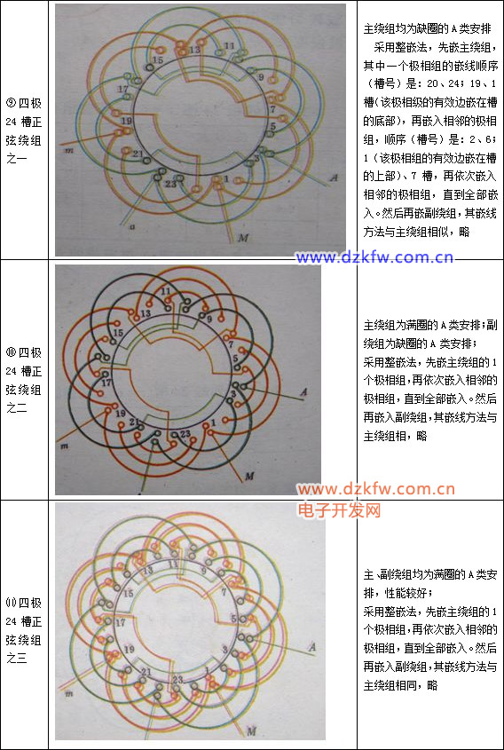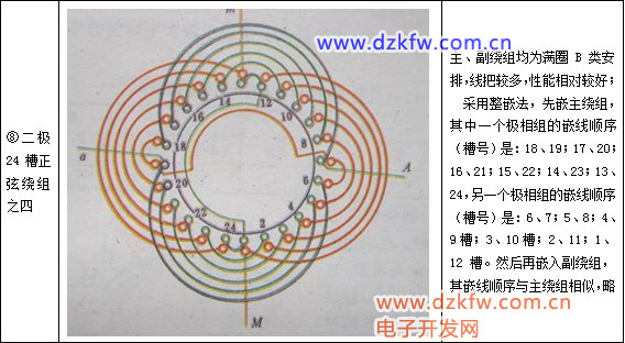 由于啟動型電動機主繞組占總槽數(shù)的2/3,副繞組占總槽數(shù)的1/3,所以主繞組占16槽,副繞組占8槽;
