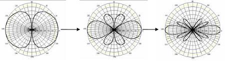 若干個對稱振子組陣,能夠控制輻射,產生“扁平的面包圈”,把信號進一步集中到在水平面方向上。