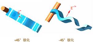 下圖示出了另兩種單極化的情況:+45°極化與-45°極化,它們僅僅在特殊場合下使用。這樣,共有四種單極化了,見下圖。把垂直極化和水平極化兩種極化的天線組合在一起,或者,把+45°極化和-45°極化兩種極化的天線組合在一起,就構成了一種新的天線---雙極化天線。