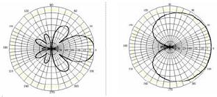 單個半波振子垂直面方向圖 兩個半波振子垂直面方向圖 四個半波振子垂直面方向圖