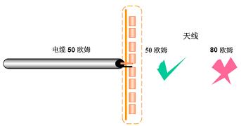 什么叫匹配?簡單地說,饋線終端所接負載阻抗ZL 等于饋線特性阻抗Z0 時,稱為饋線終端是匹配連接的。匹配時,饋線上只存在傳向終端負載的入射波,而沒有由終端負載產生的反射波,因此,當天線作為終端負載時,匹配能保證天線取得全部信號功率。如下圖所示,當天線阻抗為50歐時,與50 歐的電纜是匹配的,而當天線阻抗為80 歐時,與50 歐的電纜是不匹配的。