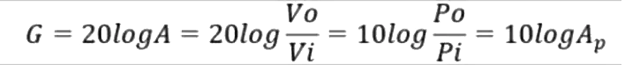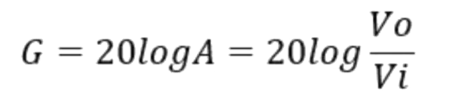 G為增益,A是電壓放大倍數(shù)(注意:是電壓放大倍數(shù)),Vo為輸出電壓,Vi為輸入電壓。