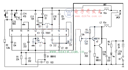 關鍵字:TDA7088,收音機電路圖,調頻收音機