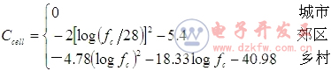 (3)COST-231Hata模型還增加了一個(gè)大城市中心衰減,大城市中心地區(qū)路徑損耗增加3dB。