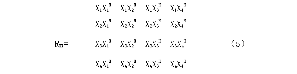 以四元天線陣為例,空間譜估計測向的基本公式,如公式(5)所示。空間譜估計測向是把每個天線的接收信號,與其他各個天線的信號都進行比較,這就是相關(guān)矩陣法,即協(xié)方差矩陣法,它完整地反映了空間電磁場的實際情況。具體地說就是構(gòu)成如下的協(xié)方差矩陣: