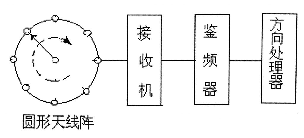多普勒頻移f,可以從旋轉(zhuǎn)的測向天線接收到的信號,經(jīng)過接收機變頻、放大、鑒頻以后得到。多普勒頻移f與0點參考頻率相比較,即可得到來波方向角θ。