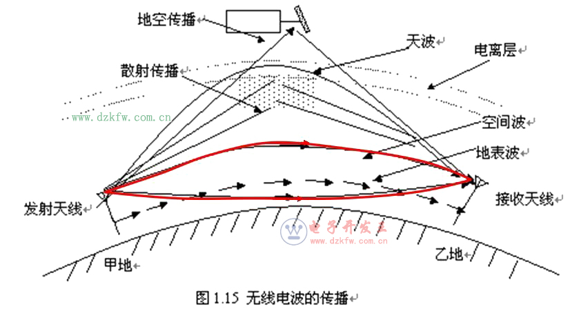 (1)地波傳播:無線電波沿著地球表面傳播,稱為地波傳播,也稱地表波傳播。
