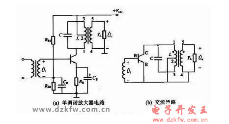 高頻小信號選頻放大器用來從眾多的微弱信號中選出有用頻率信號加以放大,并對其他無用頻率信號予以抑制,它廣泛應用于通信設備的接收機中。單調諧放大器電路及交流通路如下圖所示。