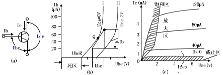 輸出特性表示Ic隨Uce的變化關(guān)系(以Ib為參數(shù))從圖2(C)所示的輸出特性可見,它分為三個區(qū)域:截止區(qū)、放大區(qū)和飽和區(qū)。