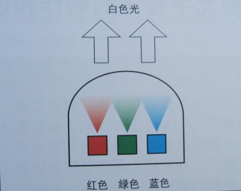 為了用LED作全色顯示,必須采用發出3原色(紅色、綠色、藍色)光的LED。白色LED就是將各種發光芯片內置在1個封裝內的器件。此外,還有在藍色LED里內置補色熒光體,用藍色以及藍色能量激起的補色來發出白色光的器件。