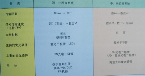 光通訊系統的種類和使用器件
