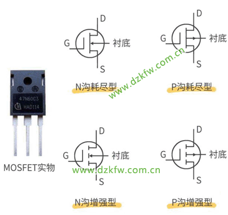 按照制作工藝可以區(qū)分為為增強(qiáng)型、耗盡型、P溝道、N溝道共4種類型,在實(shí)際應(yīng)用中,以增強(qiáng)型的NMOS和增強(qiáng)型的PMOS為主。