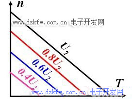 (3)控制電壓U2大小變化時,轉子轉速相應變化,轉速與電壓U2成正比。U2的極性改變時,轉子的轉向改變。