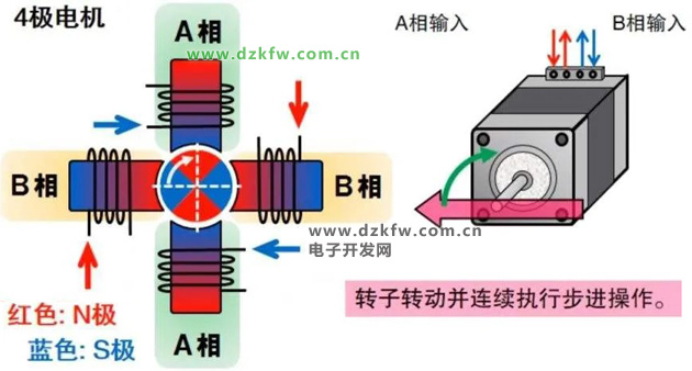 當電流流過定子繞組時,定子繞組產生一矢量磁場。該磁場會帶動轉子旋轉一角度,使得轉子的一對磁場方向與定子的磁場方向一致。當定子的矢量磁場旋轉一個角度。轉子也隨著該磁場轉一個角度。每輸入一個電脈沖,電動機轉動一個角度前進一步。它輸出的角位移與輸入的脈沖數成正比、轉速與脈沖頻率成正比。改變繞組通電的順序,電機就會反轉。所以可用控制脈沖數量、頻率及電動機各相繞組的通電順序來控制步進電機的轉動。