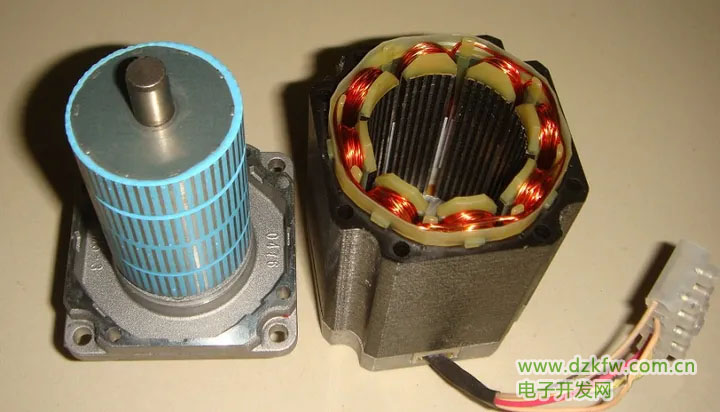 混合式步進(jìn)電機(jī)的步距角小、動(dòng)態(tài)性能好,是使用最廣泛的步進(jìn)電機(jī)。下面這張圖是混合式步進(jìn)電機(jī)的轉(zhuǎn)子和定子實(shí)物圖: