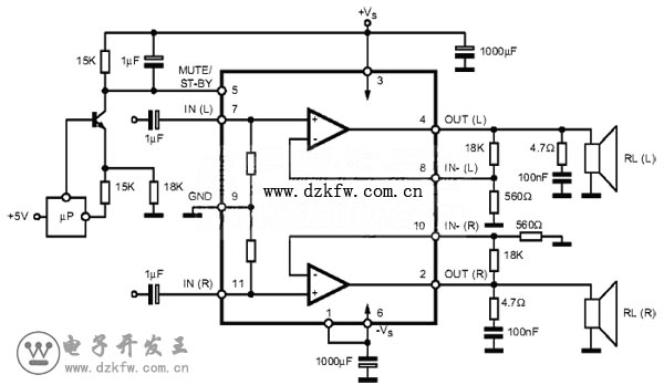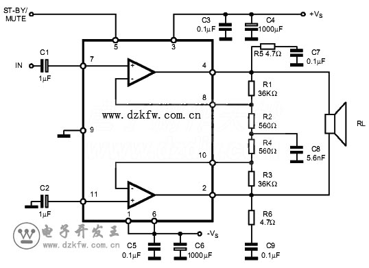 TDA7265橋接應用電路圖(BTL電路):TDA7265橋接應用電路圖(BTL電路)
