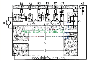 R1~R5均用RTX-1/8W型碳膜電阻器。C1~C3均用CD11-10V型電解電容器,C4用CT1型瓷介電容器。G用兩節5號干電池串聯而成,電壓3V。